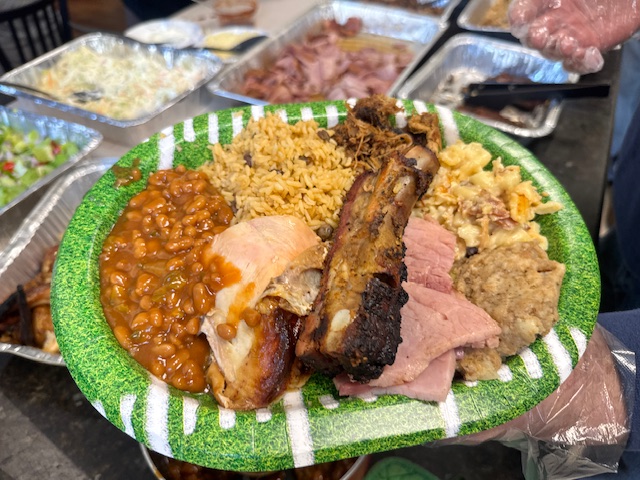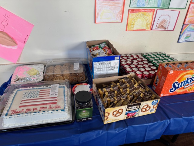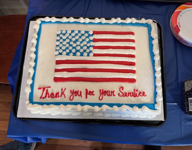 At Homes For the Brave, Weston Kiwanians reheated spiral ham, roasted chicken, chili, mac and cheese, baked beans, rice and red beans, and pulled pork. Tasty treats included cake, cookies, brownies, chips/salsa/guacamole, soda, and a mixed green salad with tomatoes. As they have since 2011, after serving the veterans, club members washed the dishes and headed home.
